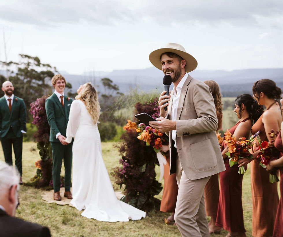 Hey, I'm Adam. I'm a Marriage Celebrant, MC, and what some may call a fun guy formerly based in Sydney's Inner West, I now call Newcastle home. I enjoy having a beer, listening to good tunes, and hanging out with dogs. Since being asked to be part of my brother's wedding as a celebrant many years ago, I found a love and passion for being a part of two people's big day!